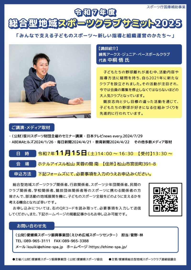 【お知らせ】愛媛県総合型地域スポーツクラブサミット2025参加者募集!