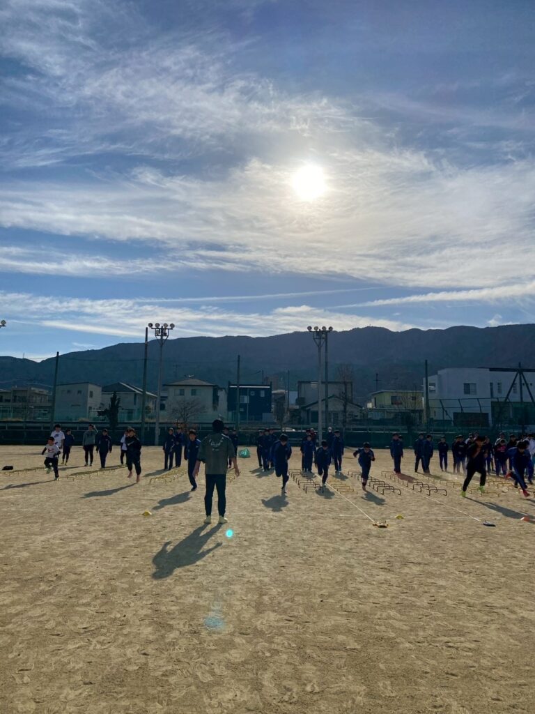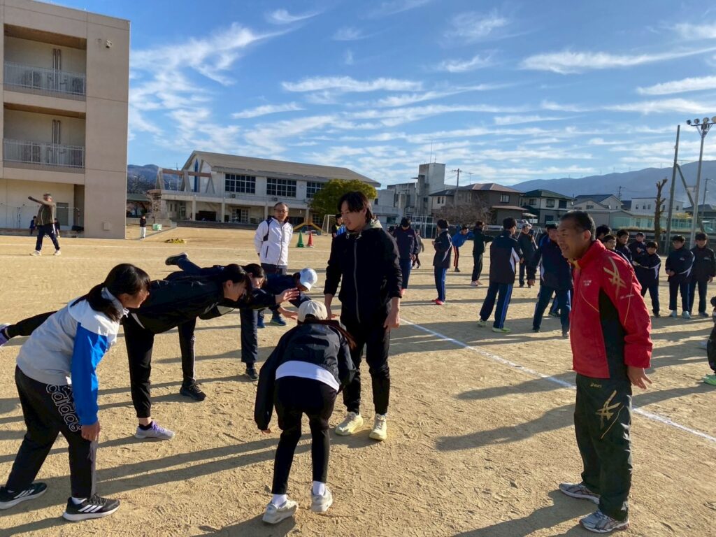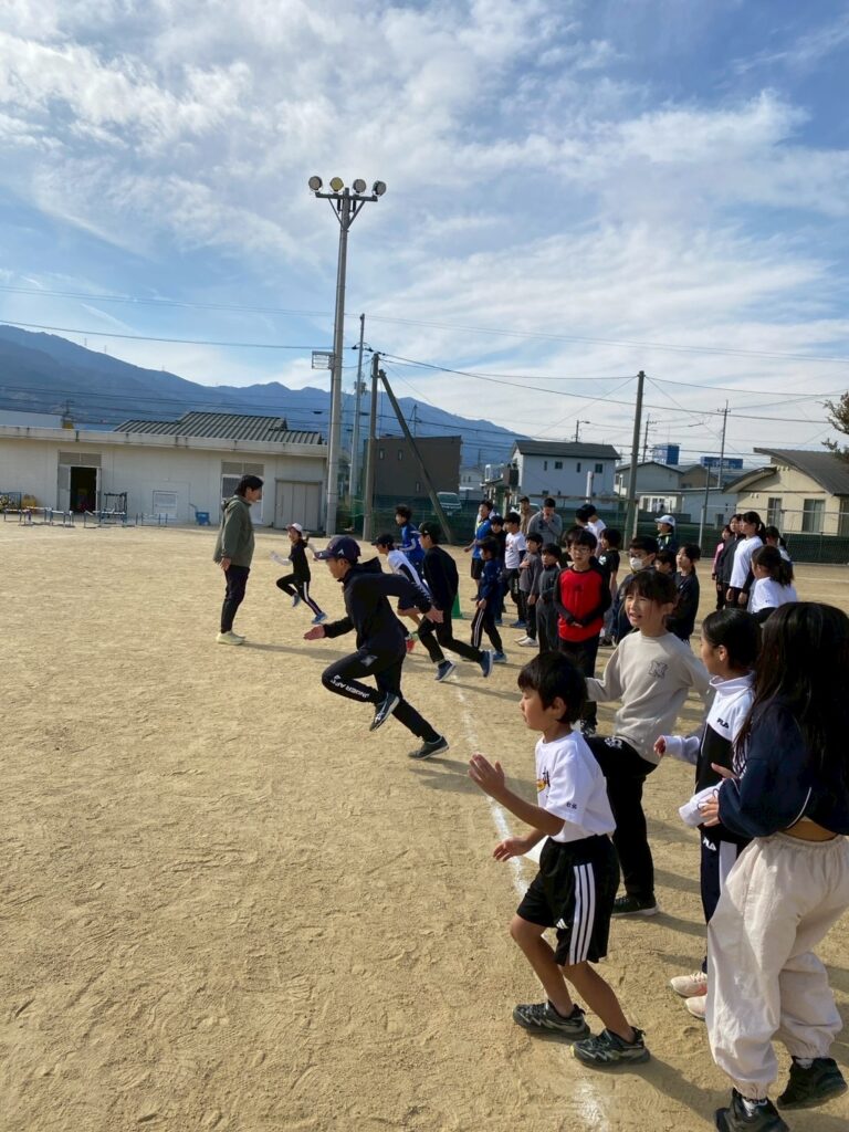 令和7年12月13日(土)、妻鳥小学校グラウンドにおいて、四国中央市の総合型地域スポーツクラブ「川之江TRACK&FIELDクラブ」の25周年記念イベントとして、陸上練習会が開催されました。